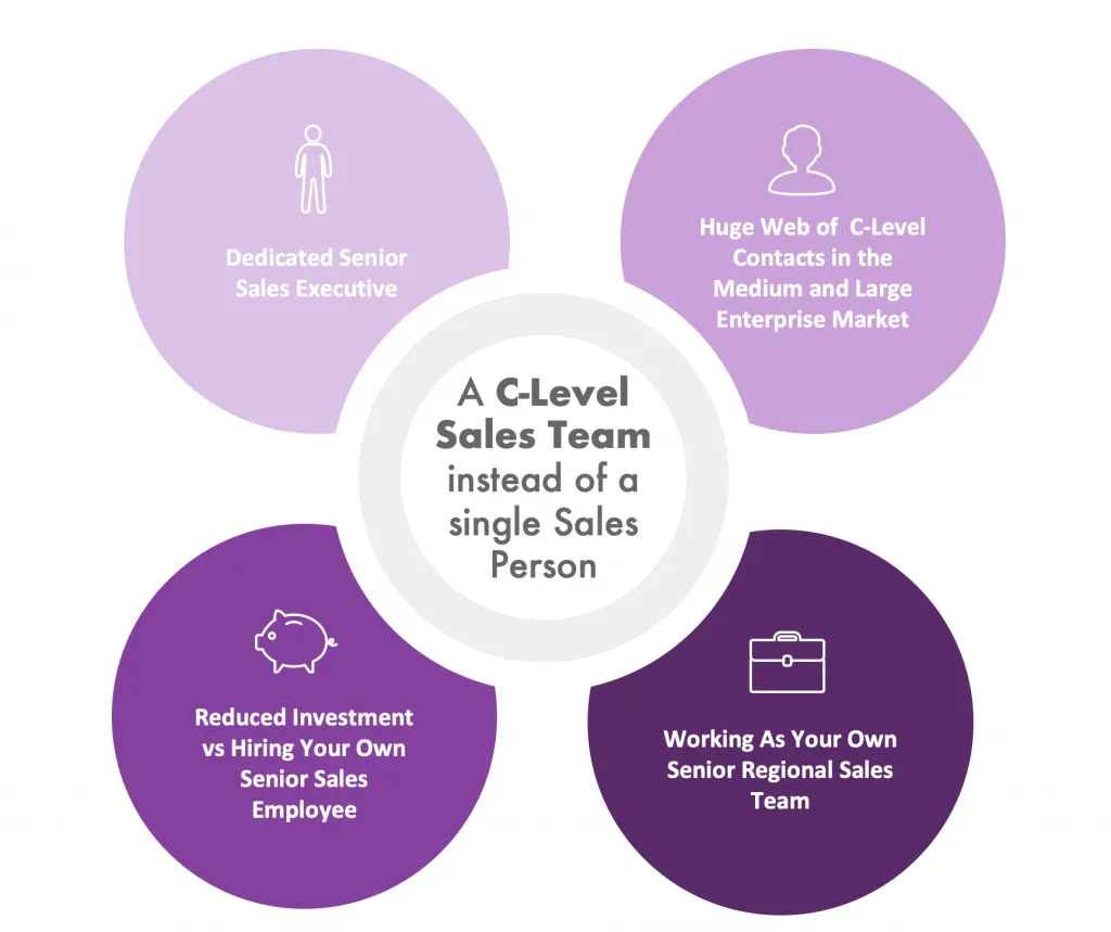 - Equipo de ventas dedicado de nivel C a tiempo completo.